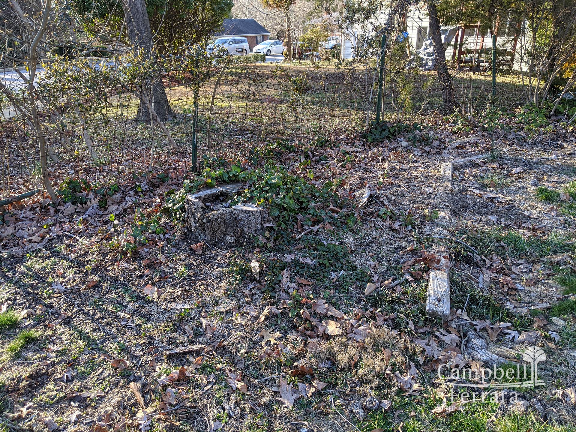 The clients wanted an attractive landscape with a play area in the front yard for their young active children and an area for mom and dad to relax. The front yard was full of tree roots, the leftovers of three large stumps, and several large overgrown shrubs next to the house. To address the client’s objectives, the landscape plan created included leveling out the front lawn area to make it usable, removing the overgrown shrubs next to the foundation to make room for an assortment of edible and native plants, and the creation of a seating area that together would significantly improve the curb appeal of the property.