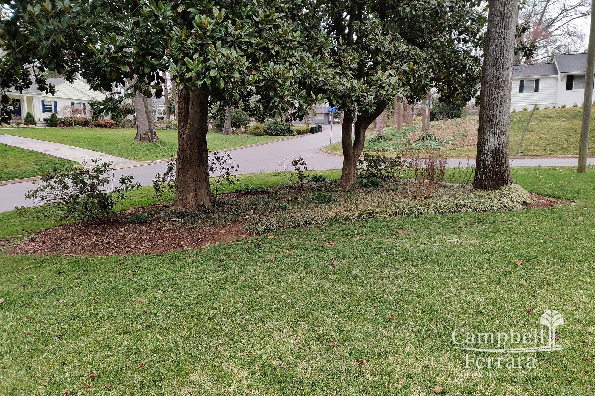 Planting in front of home – Selected plantings were removed, with new shade tolerant shrubs and perennials integrated to create more organization with sequences and repetition in island beds. The new plantings refreshed and rejuvenated the curb appeal and met the visions of the client.